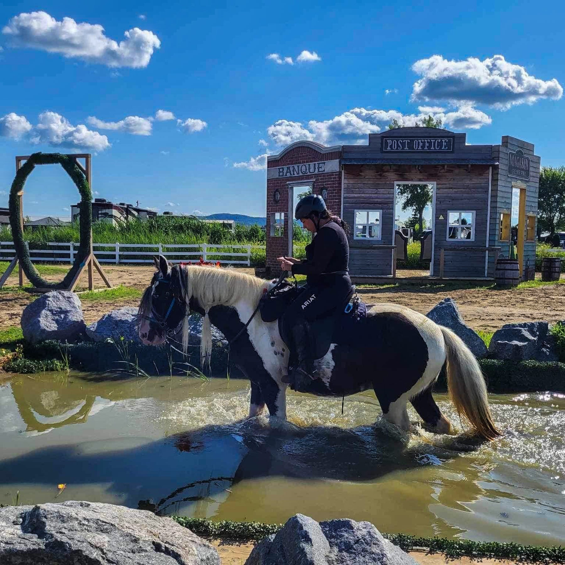 Plus de 80 obstacles pour habituer les chevaux à galoper dans les lacs, traverser des rivières, passer sur les ponts, se préparer à la randonnée et bien plus.